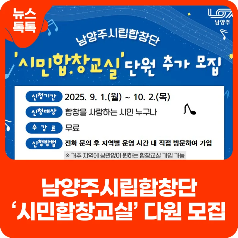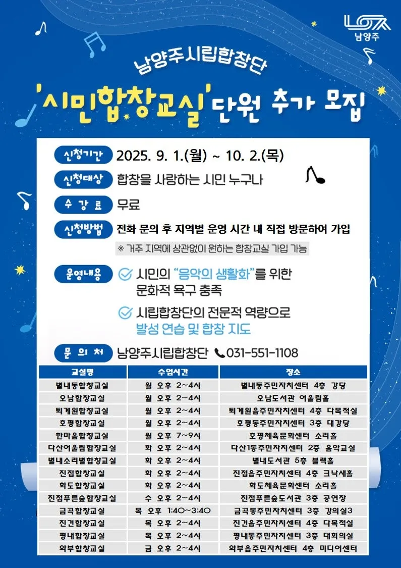 2025 남양주시립합창단 '시민합창교실' 단원 추가 모집
