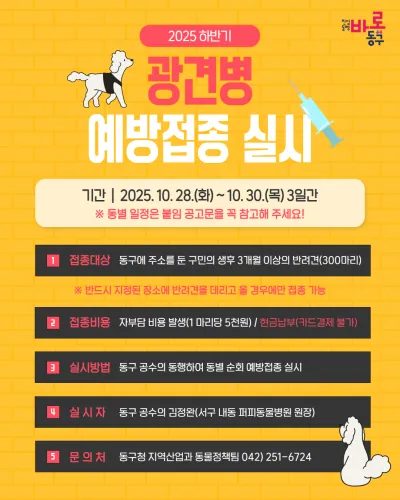 2025년 하반기 광견병 예방접종 실시 | 대전 동구