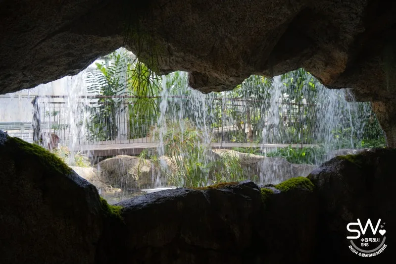 폭포 안 동굴 속 탐방로 물줄기가 시원하게 흘러내립니다. 그래서인지 생각보다 습도가 높은 편이었습니다. 안에서 사진을 찍으려고 하는데 김이 서려서 쉽지 않았습니다.