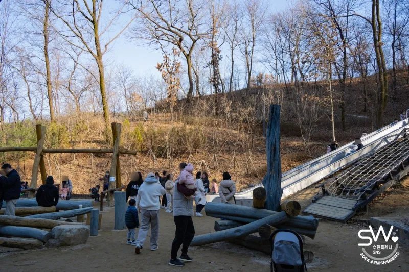 온실을 나와 출구 쪽으로 나와보면 방문자 센터에서는 보이지 않는 영흥 수목원 안쪽에는 놀이터를 볼 수 있습니다. 기다란 미끄럼틀을 포함해 다양한 놀이기구가 있어서 그런지 가족 단위 손님들이 많이 있었습니다. 신나게 뛰어노는 아이들을 보다 보면 입가에 미소가 번집니다.