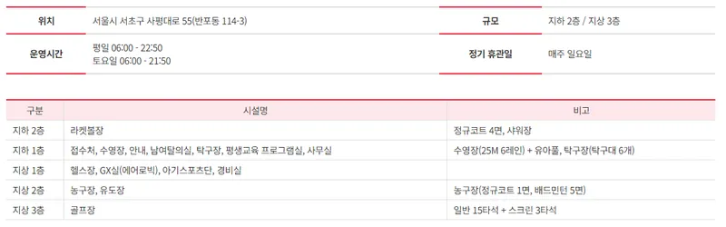 서초구민체육센터는 서초소방서 근처에 위치해있습니다.