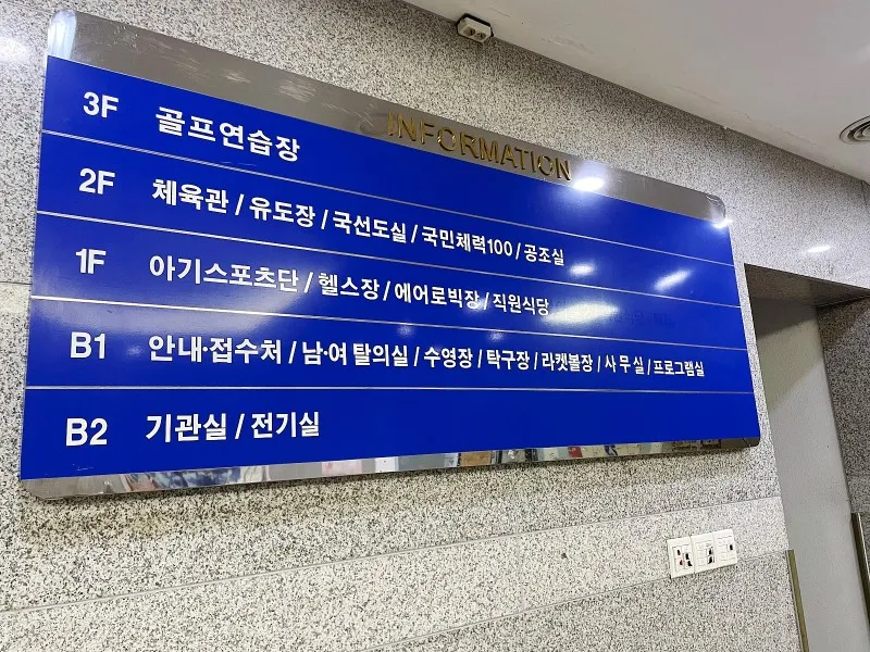 안내, 접수처 / 수영장 / 탁구장 / 라켓볼장 / 프로그램실 등