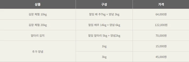 ✔️김장 테이블은 4인 기준이기에 인원수가 많을 경우 가급적 나눠서 예약을 해주시길 바랍니다.