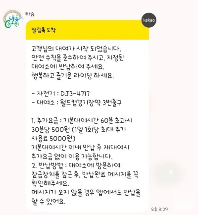 타슈 요금 체계와 이용 시간