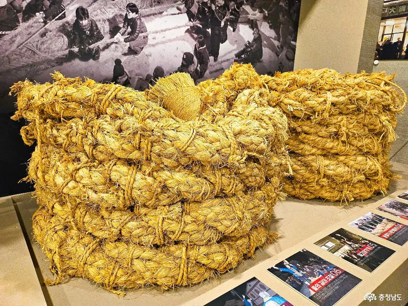 실내에는 거대한 줄다리기 줄의 일부도 전시되어 있었습니다. 전체 줄은 길이 약 200미터, 지름은 무려 1미터가 넘고, 무게는 40톤에 달한다고 합니다.