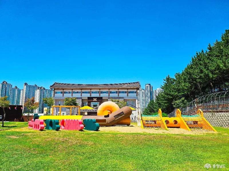 아이들이 뛰어 놀 수 있는 놀이터도 줄다리기 줄을 형상화한 놀이 시설이라서 더 인상 깊었고, 날이 좀 시원해지면 다시 찾아와 보고 싶다는 생각이 들었습니다.