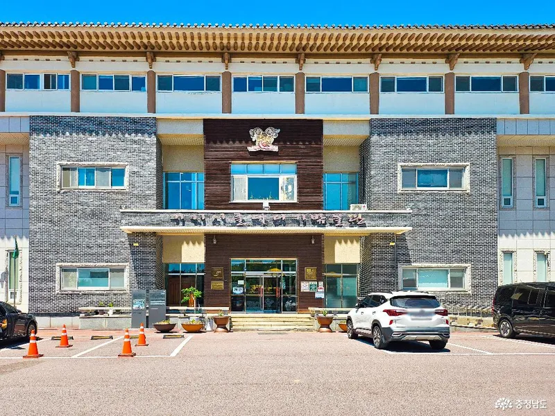 기지시줄다리기박물관은 당진시 송악읍 안틀모시길 11번지, 기지시리 줄다리기 행사장 인근에 자리하고 있습니다. 도로를 따라 들어서자, 웅장한 전통기와지붕과 함께 잘 정돈된 박물관 외관이 눈에 들어왔습니다.
