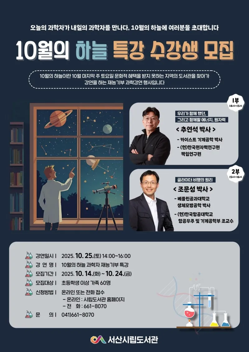 [서산시립도서관] 10월의 하늘 특강 수강생 모집
