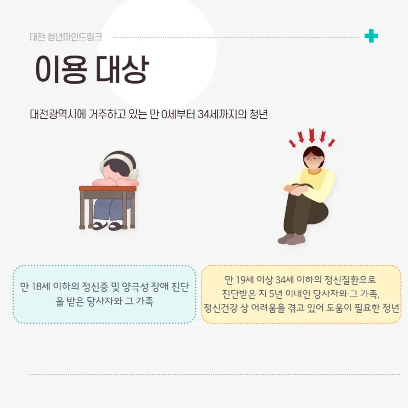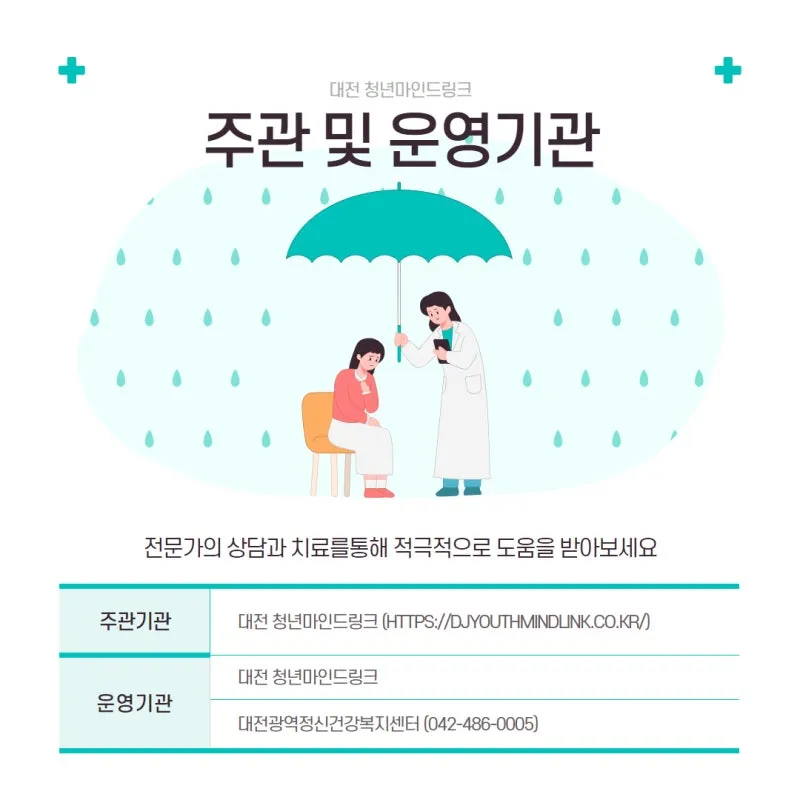 - 운영기관: 대전 청년마인드링크, 대전광역정신건강복지센터 (042-486-0005)