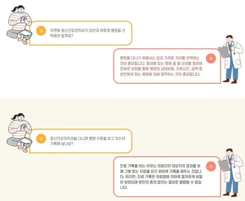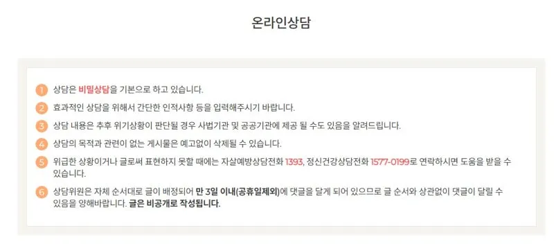 이 밖에도 간단한 온라인상담도 가능하며, 다양한 정신건강 관련 정보도 확인 가능합니다.