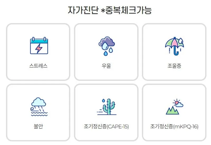 - 자가검진을 통해 현재 자신의 정신건강 상태를 쉽게 확인할 수 있으며, 상담을 통해 전문적인 도움을 받을 수 있습니다.