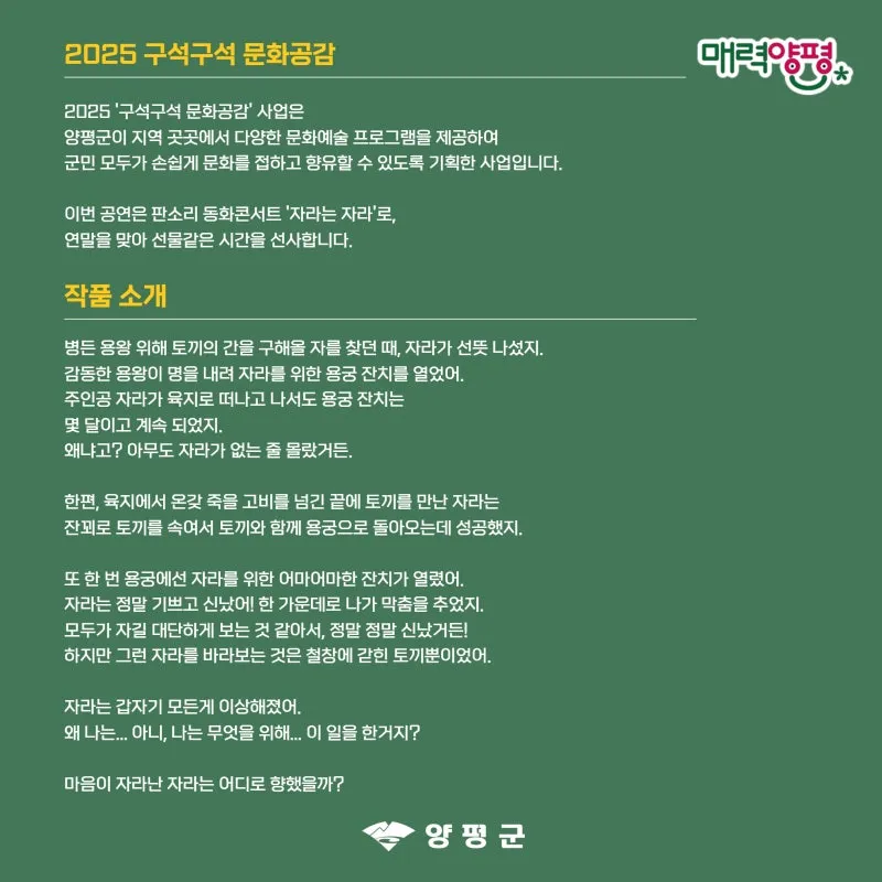 2025 구석구석 문화공감 판소리 동화콘서트 ‘자라는 자라’