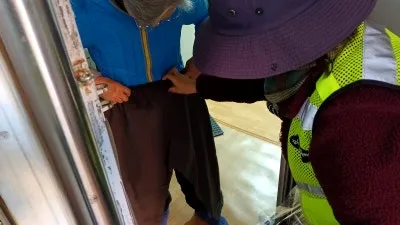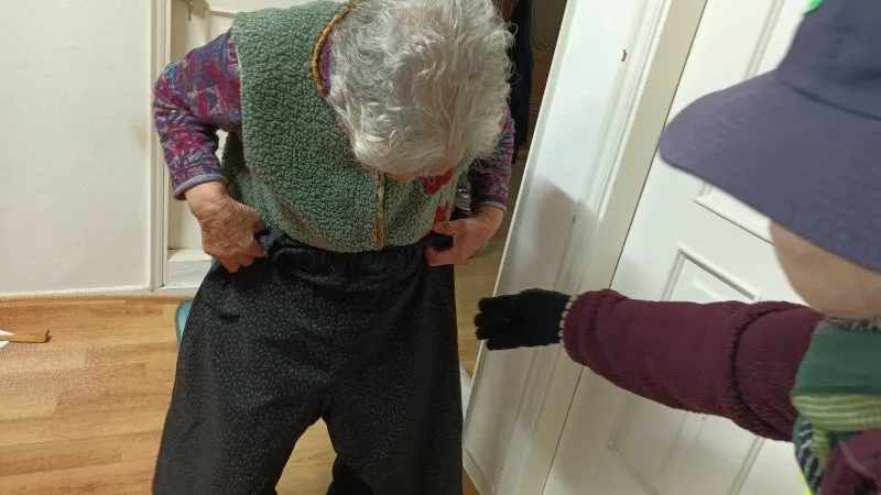 홀로 지내는 겨울이 유독 추웠던 어르신들이 바지를 받아 맞는지 대보고 계시는 모습을 보면서 주민자치위원들은 남몰래 미소 지었습니다.