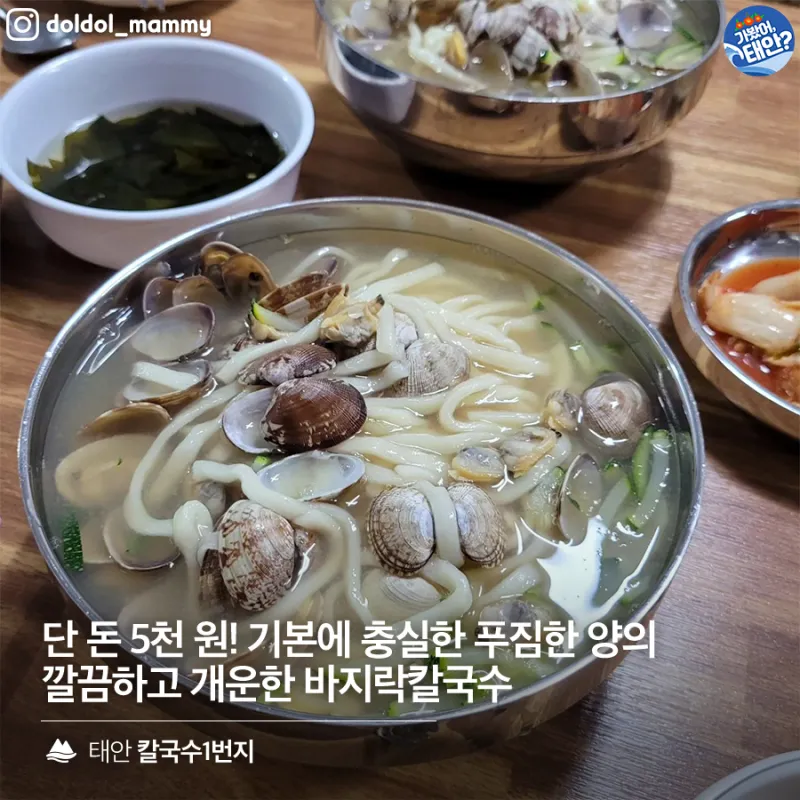 추운 날씨가 계속되고 있는 요즘, 자연스레 따뜻한 국물 요리를 찾으시는 분들이 많습니다. 태안 서부시장 맛집 태안 칼국수1번지는 행정안전부가 선정한 착한가격업소로 이곳에 들려 바지락으로 우려낸 깔끔하고 개운한 바지락칼국수로 몸을 녹여보시는 것은 어떨까요? 단돈 5천 원으로 배부르고 따뜻한 겨울을 보낼 수 있습니다.