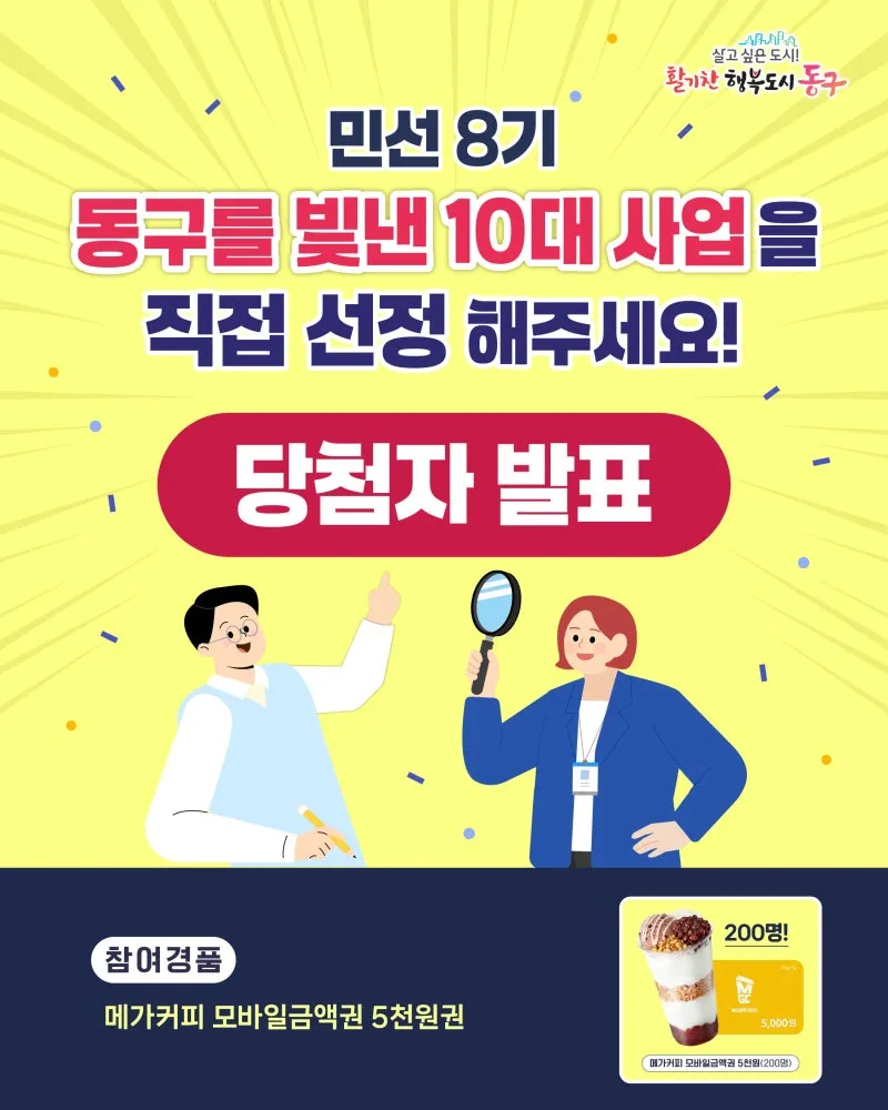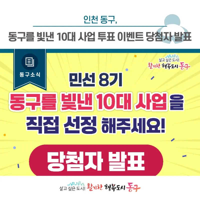 [인천 동구 이벤트] 인천 동구, 민선 8기 '동구를 빛낸 10대 사업' 투표 이벤트 당첨자 발표!