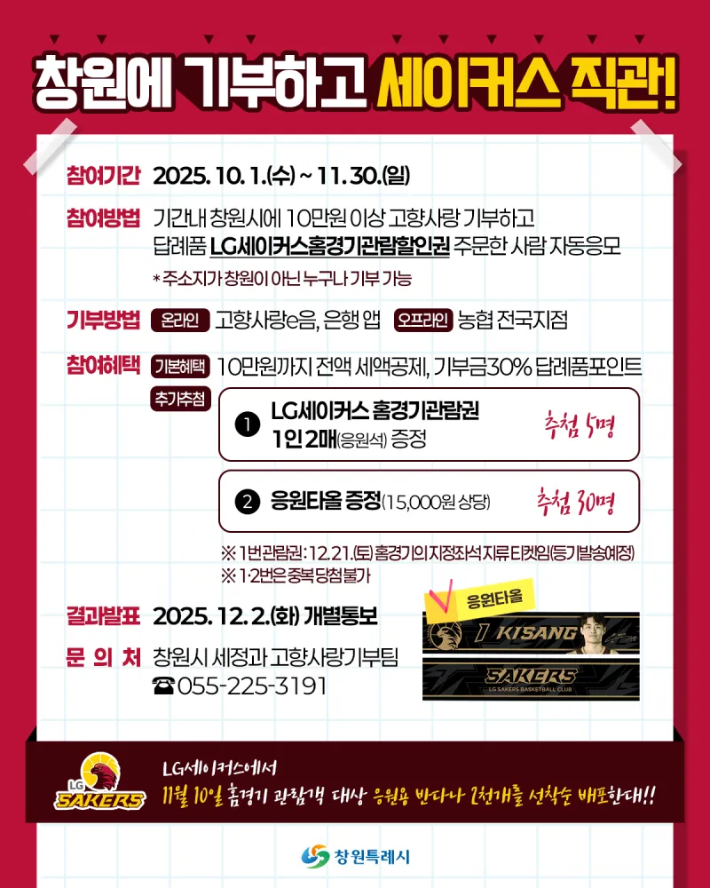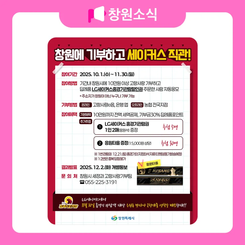#창원특례시 #고향사랑기부제 #세이커스직관이벤트 #LG세이커스