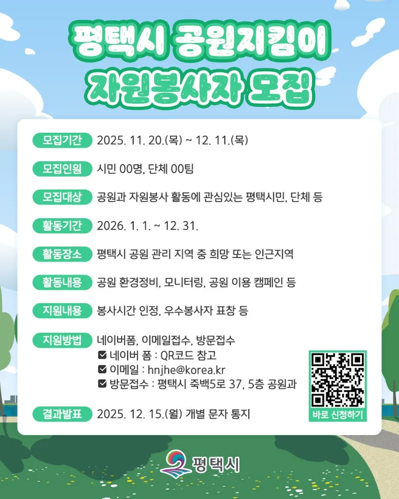 ✅ 평택시 공원지킴이 자원봉사자 모집 정보