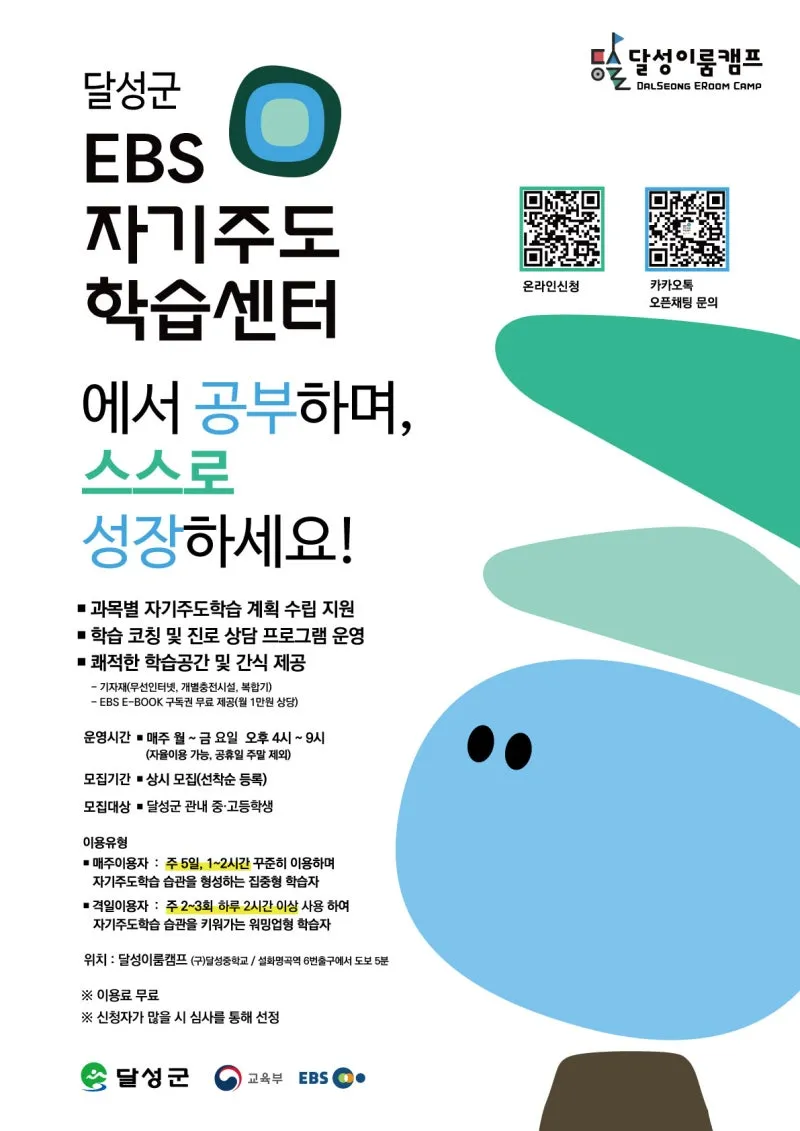 #자기주도학습센터 #달성군 #EBS #달성이룸캠프 #학교복합시설 #달성중학교 #독서실 #공부습관 #진로상담