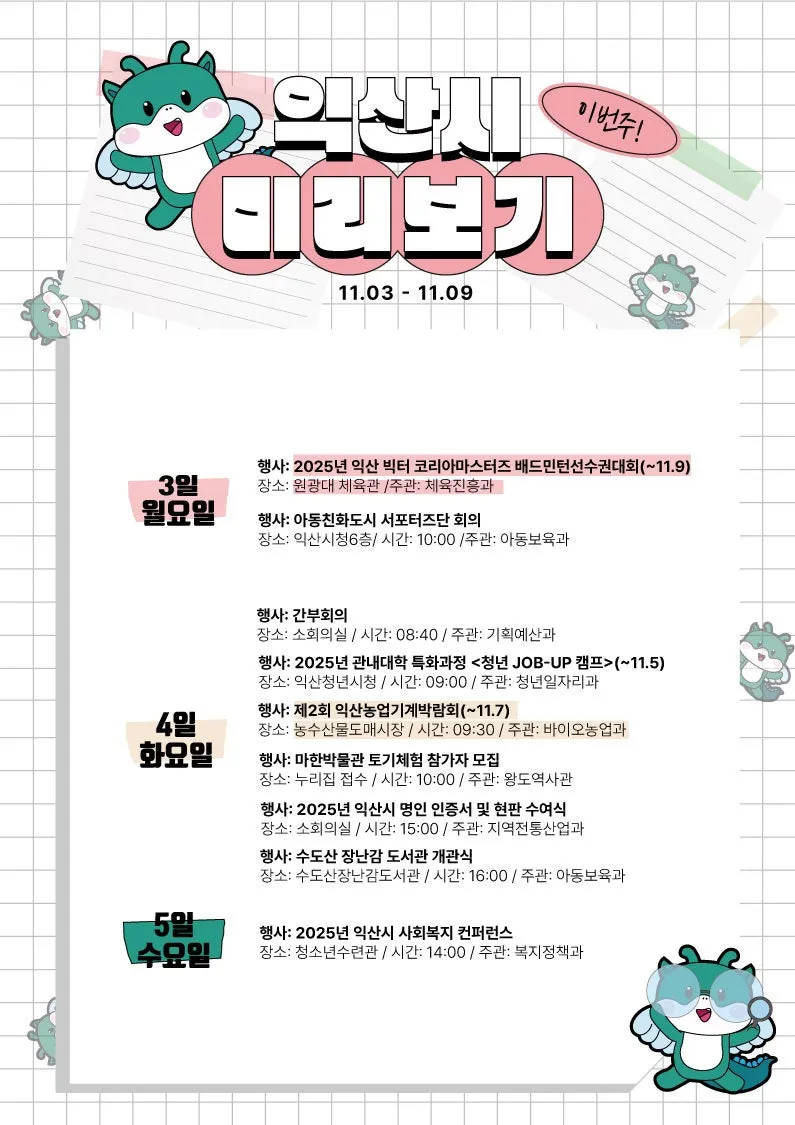 📢 익산시 주간 주요 일정 (11.03. ~ 11.09.) 📢
