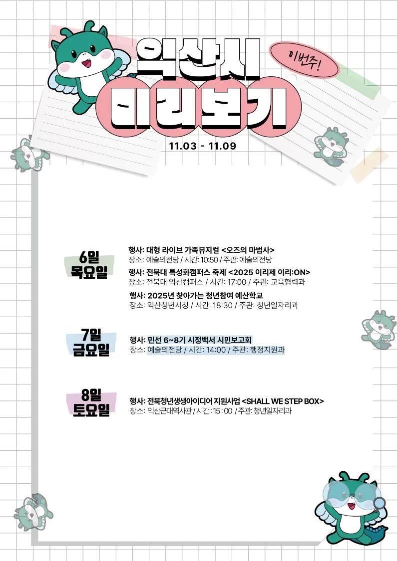 익산시 주간 주요 행사 11월 1주차 (2025. 11. 03. ~ 11. 09.)
