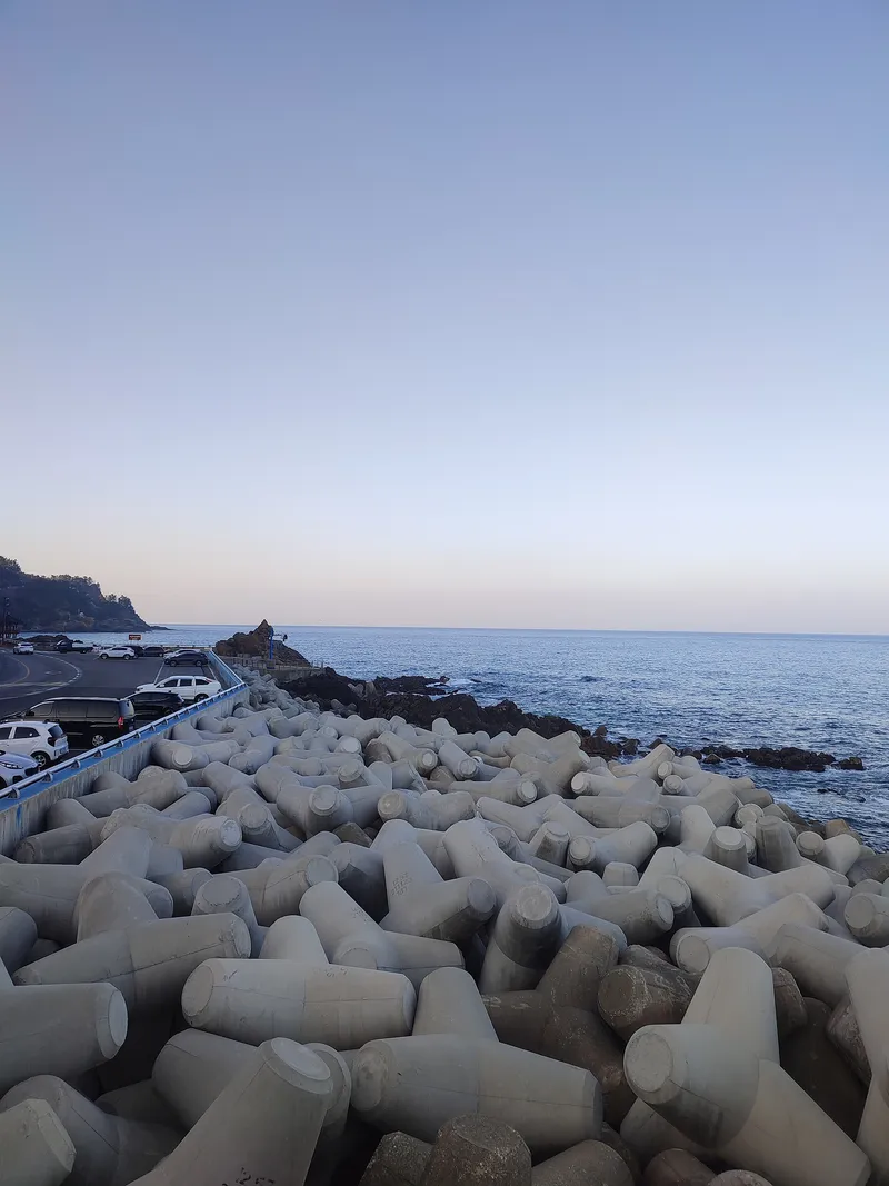 삼각바위(테크라포트) 방파제 위에서 낚시를 즐기고 있는 몇몇의 사람들이 있었는데요.