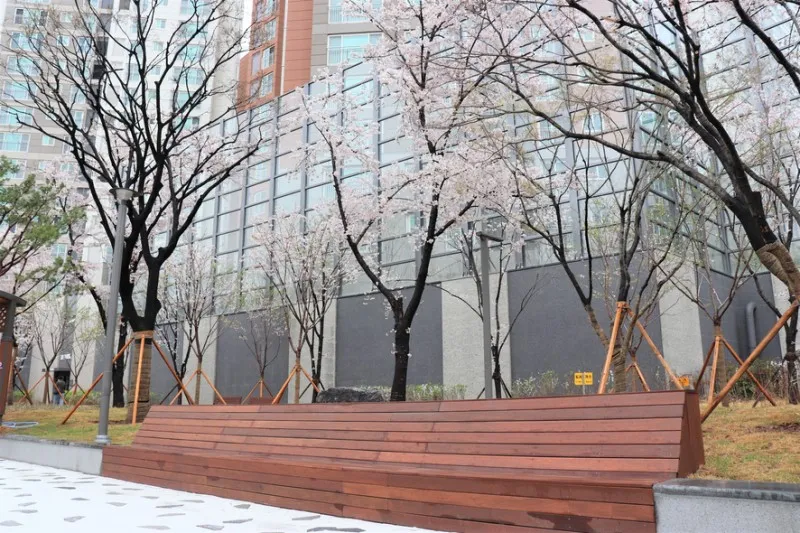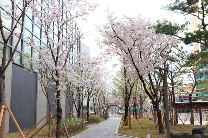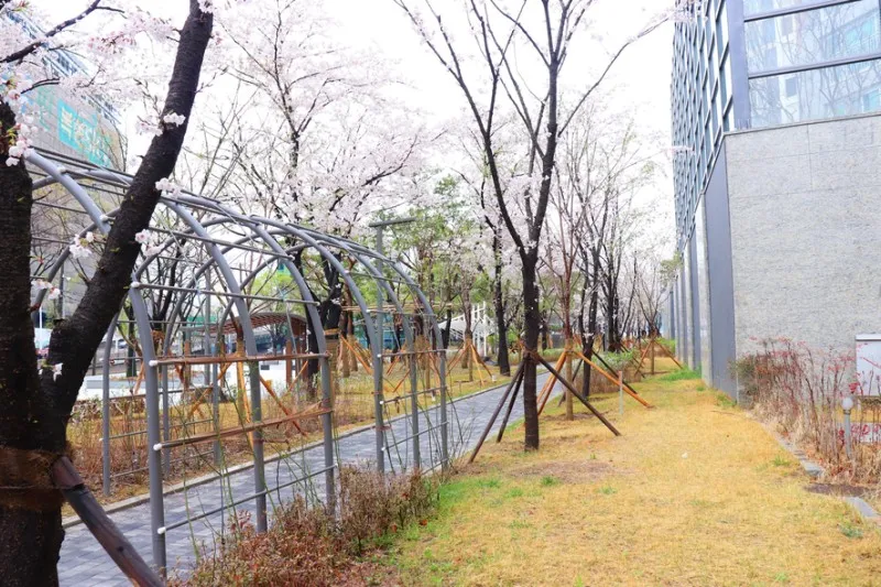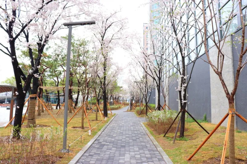 기존에 식재되어 있었던 벚꽃나무를 그대로 살려 재정비했기 때문에 연식 있는 벚꽃 나무가 터널을 이루어 더 멋지게 뽐내고 있답니다.