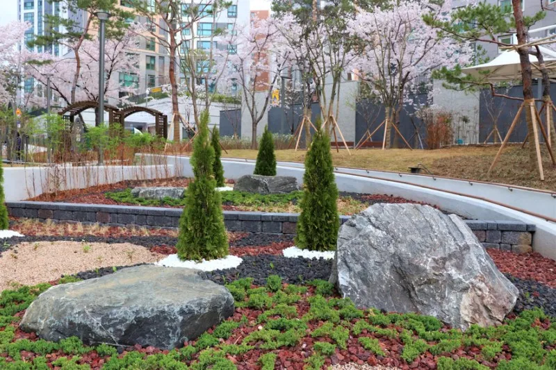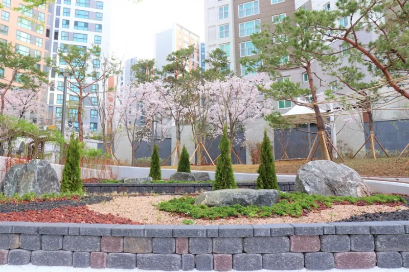기존 식재된 나무들과 새로운 식물도 식재되었네요.
