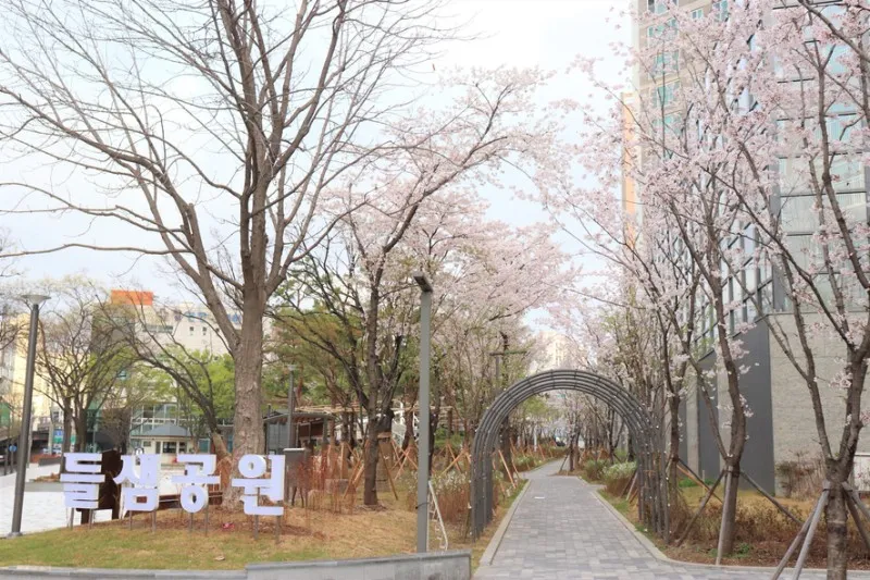 현재 들샘공원은 벚꽃 맛집으로 변신해 있어요.