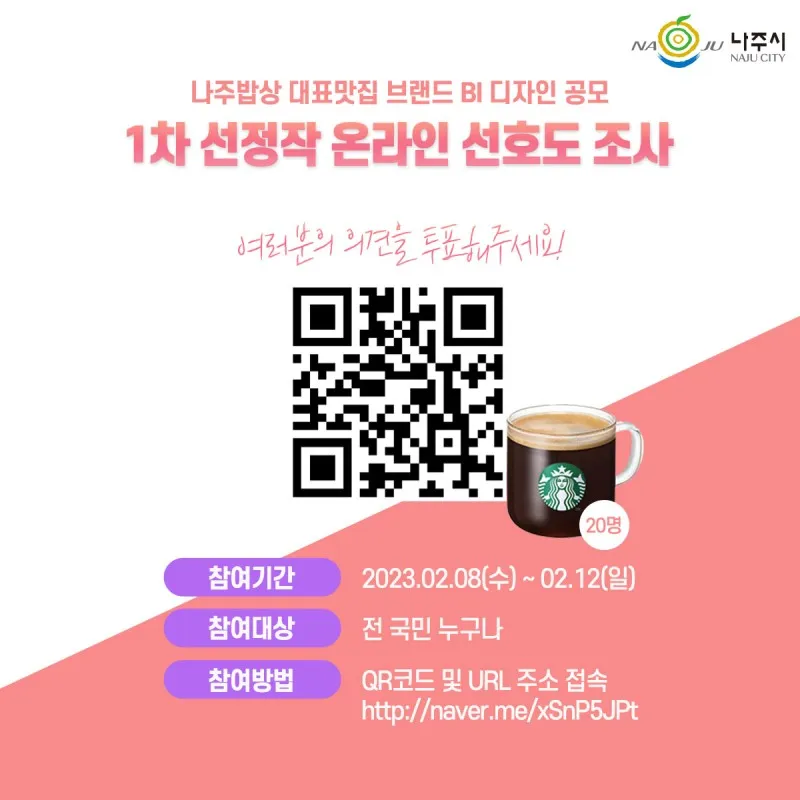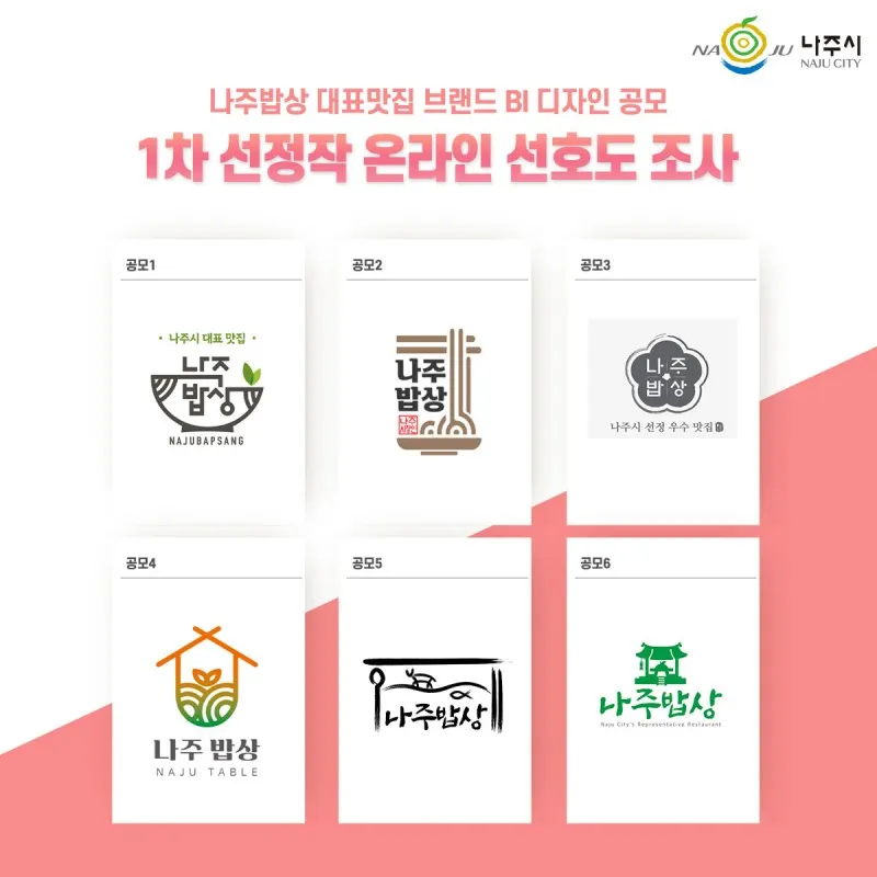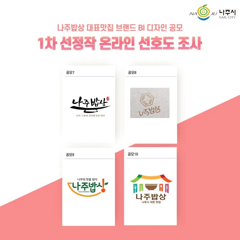 「나주밥상 대표맛집 브랜드 BI 디자인 공모 」1차 선정작 온라인 선호도 조사