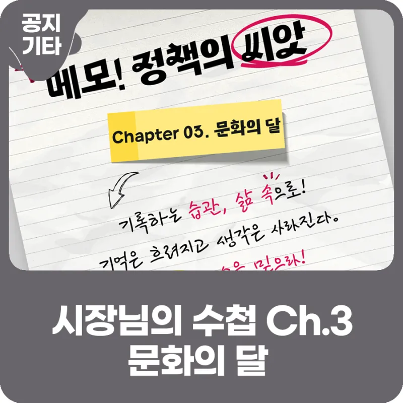 시장님의 수첩 "시장님의 메모 한 줄은 어떤 정책이 되었나?"(문화의 달, 문화의 날)
