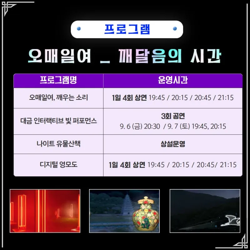 ✅ 주요행사 : 개막식(9.6), 미디어파사드, 융복합공연, 레이저쇼 등