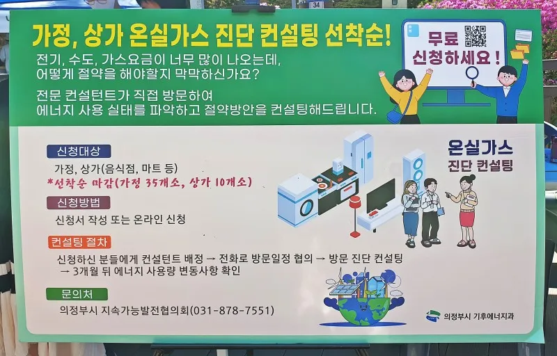 의정부시가 가정, 상가 등 비산업부문에 대하여 전문 컨설턴트가 현장을 방문하여 에너지사용량을 진단하고 절감 방안을 안내하는 무료 서비스 참여자를 아래와 같이 선착순 모집합니다.