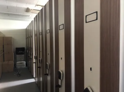 영화에서 등장하는 모빌랙(Mobile Rack)이라 불리는 이동식 서가에서 주인공들이 기록을 찾아내는 장면들