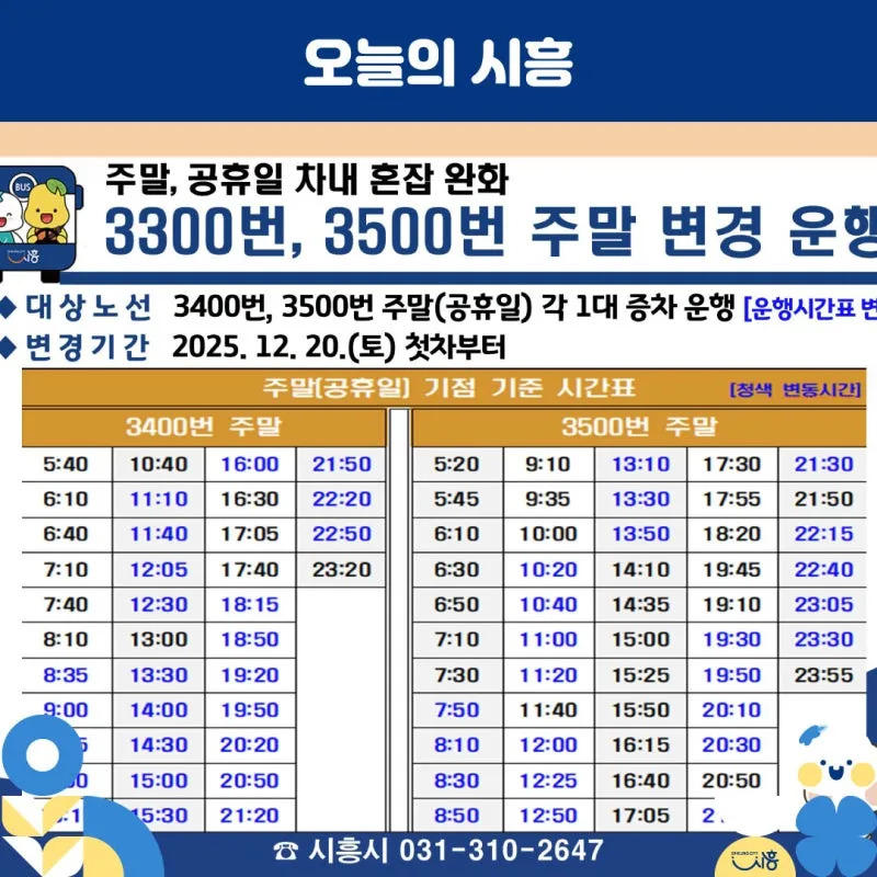 ※ 세부 운행시간표는 시흥교통 홈페이지 참조