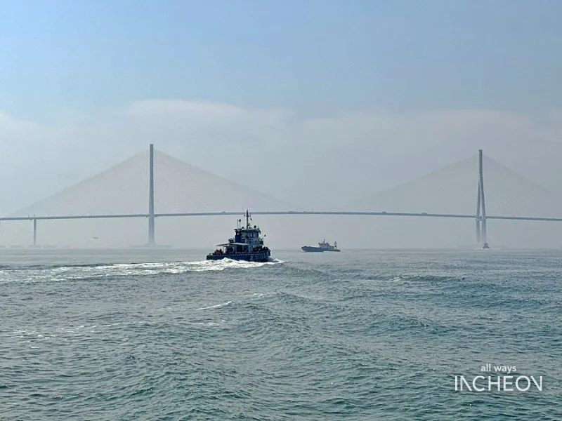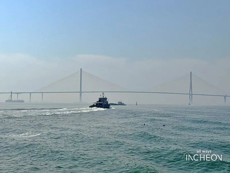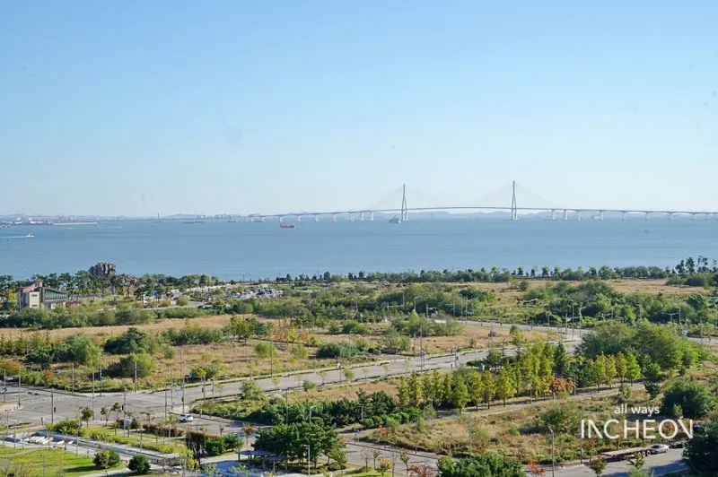 다리에서 바라보는 인천의 전경과 바다는