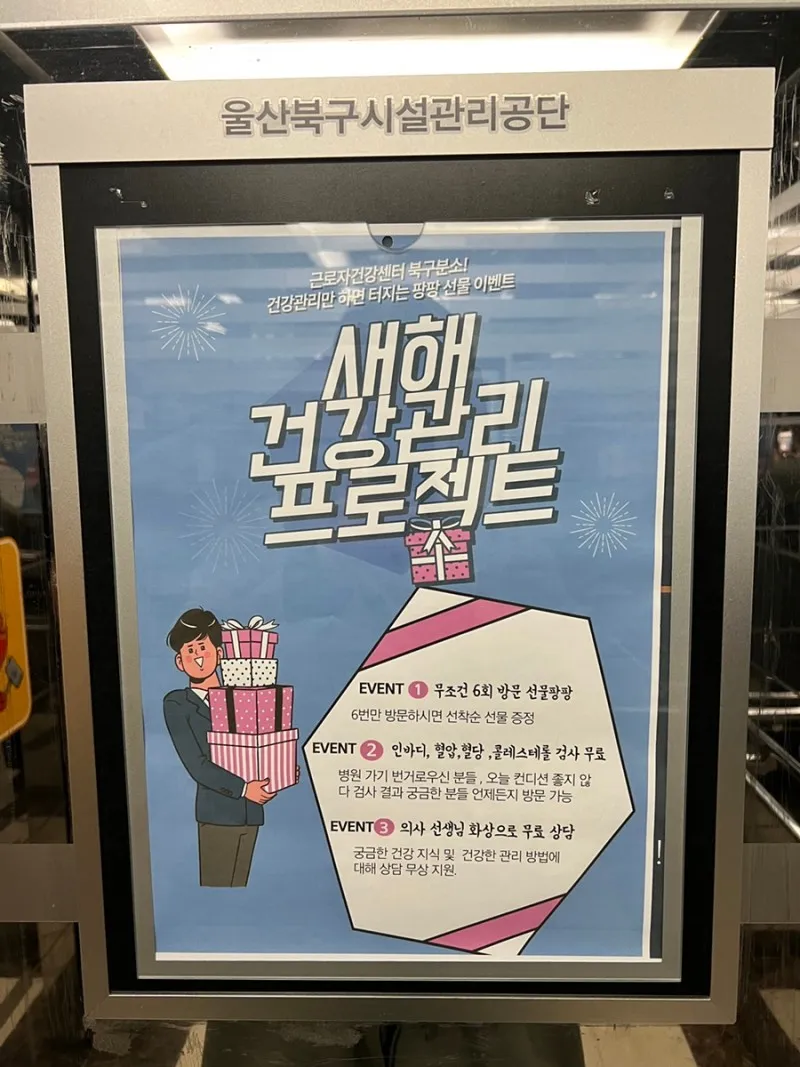 엘리베이터 한쪽편에 일자리 정보게시판이 있ㅇㅓ요