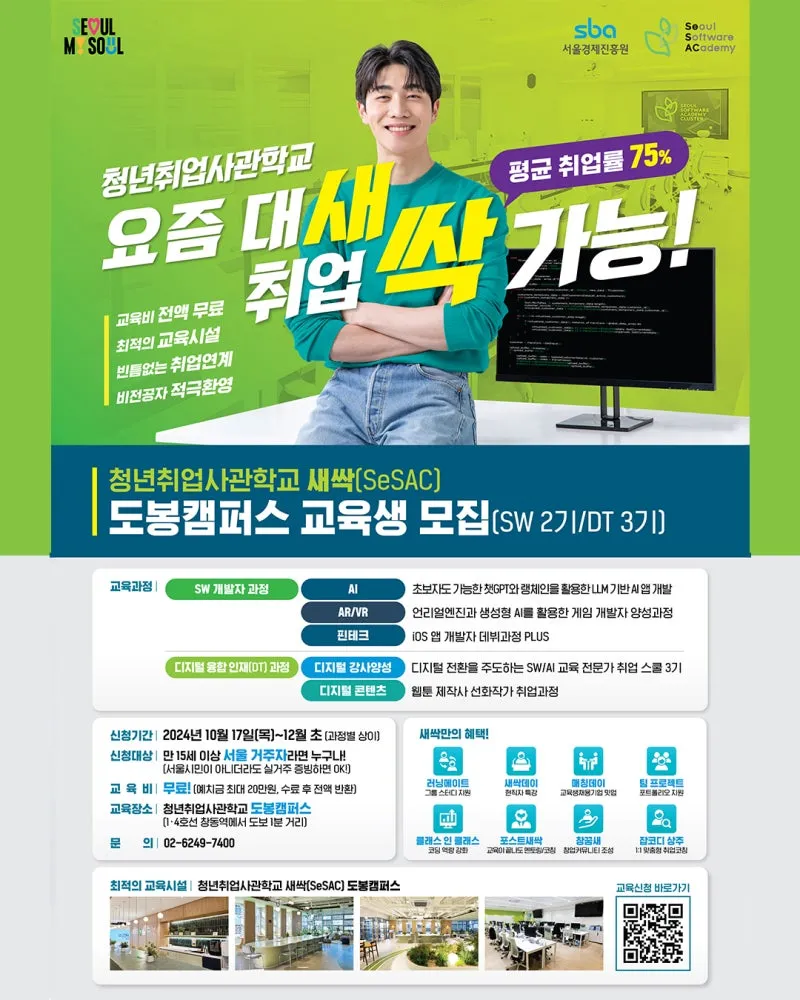 청년취업사관학교 도봉캠퍼스 교육생 모집(SW2기/DT3기)