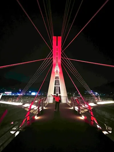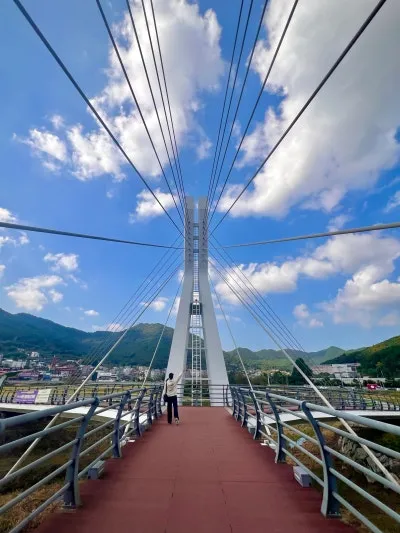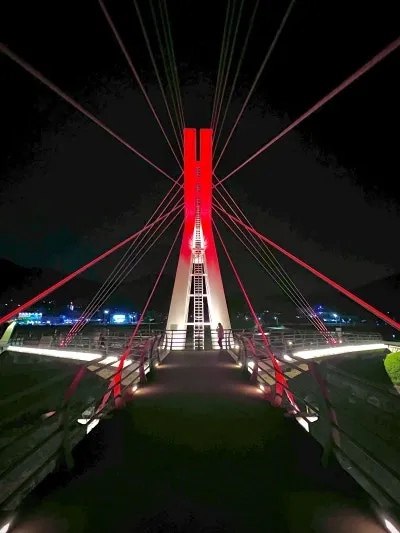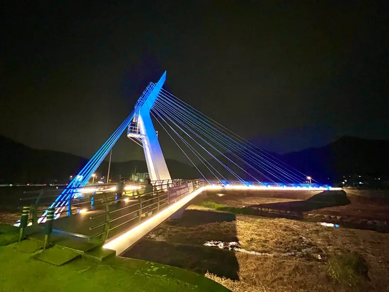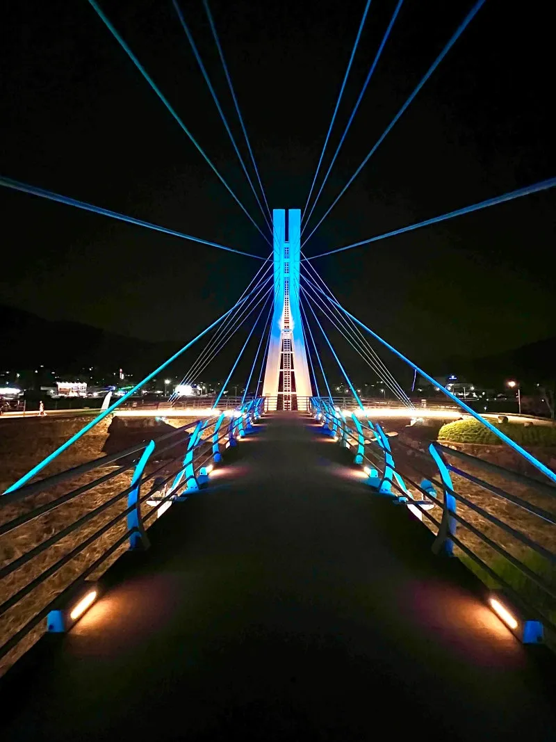 다리를 연결하는 케이블 색깔이 계속 바뀌면서