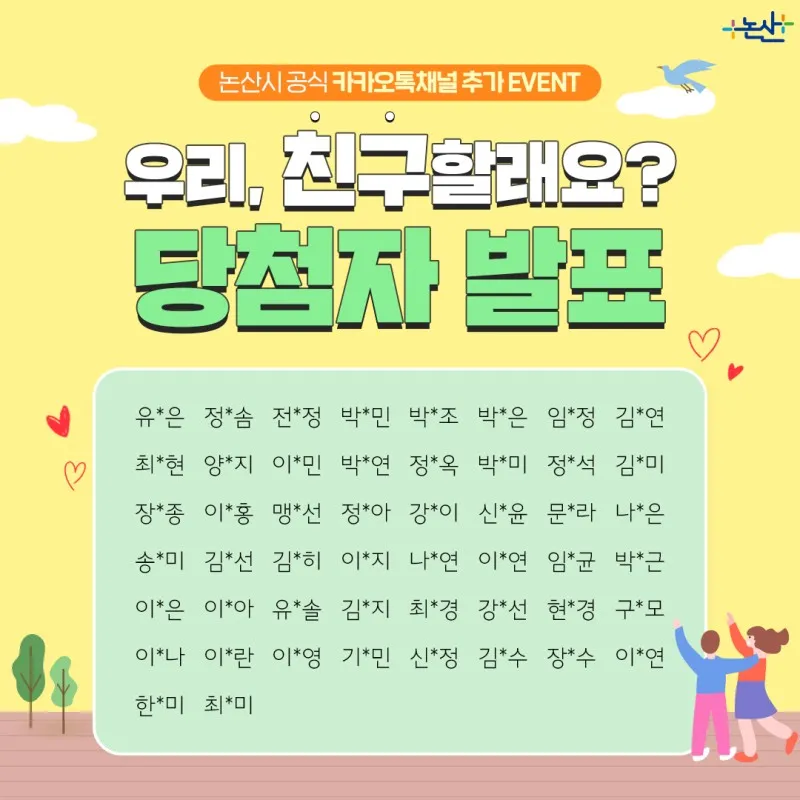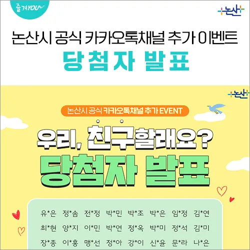 [이벤트] 논산시 공식 카카오톡채널 친구 추가 이벤트 당첨자 발표