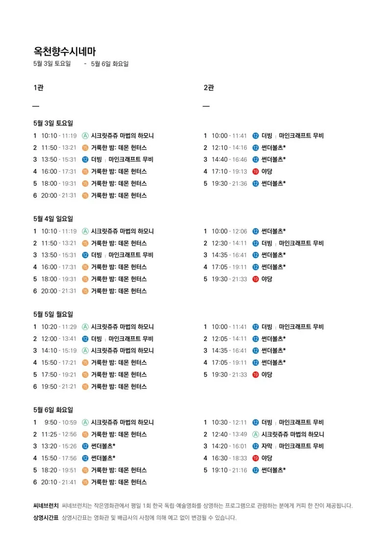 🎬4월 30일(수)~5월 6일(화) 전체 상영 영화 시간표🎬
