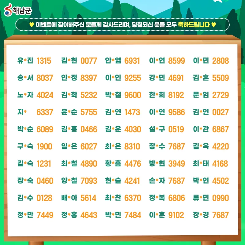 🎁경품 : 100명 추첨하여 해남미소e상품권(1만 포인트)