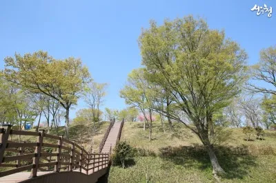 자연과 잘 어우러지는 돌과 나무데크 길 등도