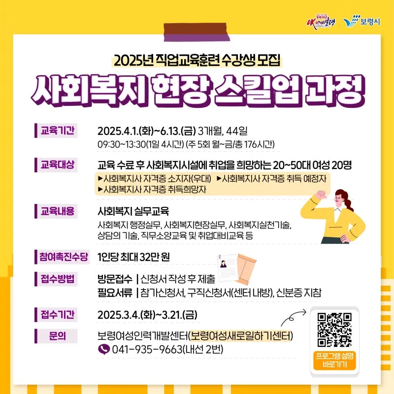 2025년 직업교육훈련 수강생 모집 「사회복지 현장 스킬업 과정」