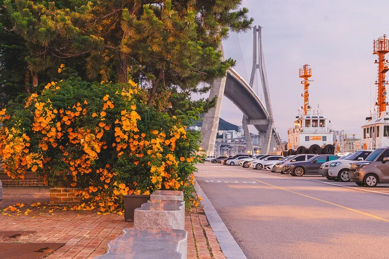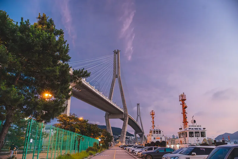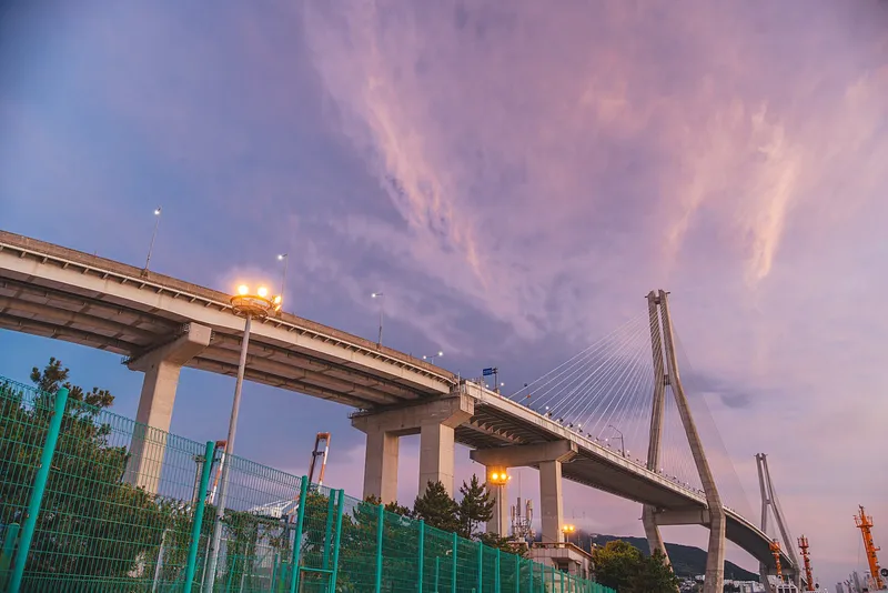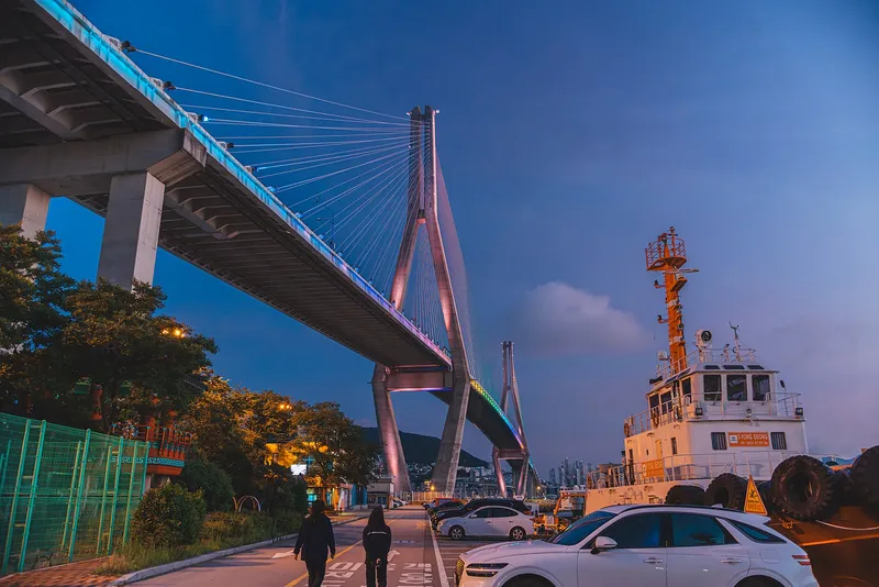 맞아요, 바로 부산항대교를 머리 위로 두고 있습니다.