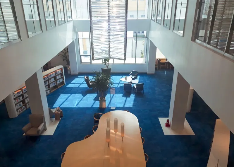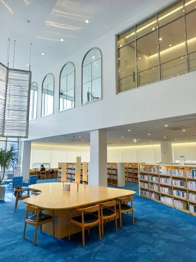 눈높이를 낮춘 서가가 시야를 탁 트이게 합니다.