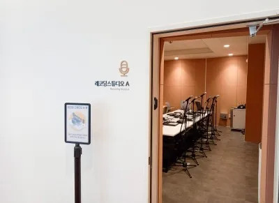 커다란 미디어 스크린에서 다양한 프로그램 안내가