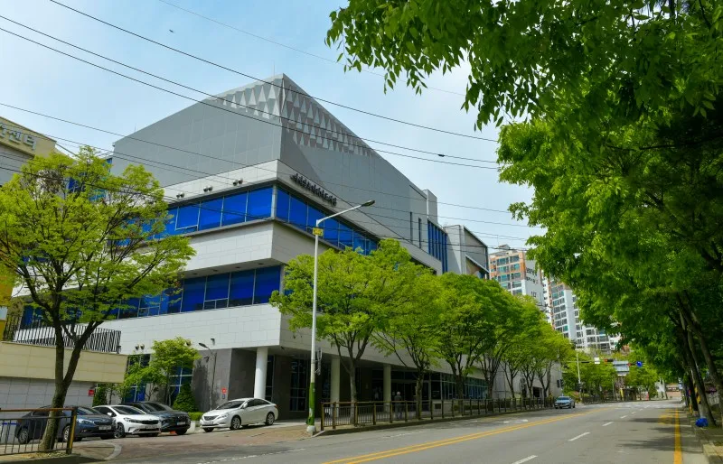멀리서 보아도 도서관 건물이 금방 눈에 들어옵니다.