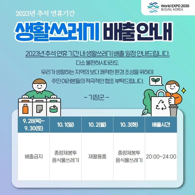#기장정보 #기장생활 #명절생활쓰레기 #추석쓰레기배출 #연휴생활쓰레기배출