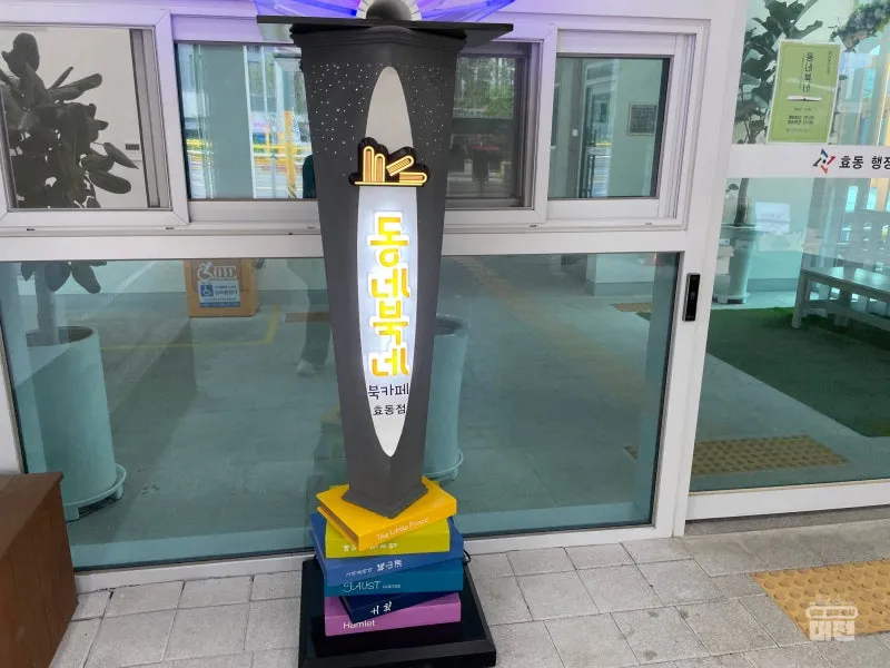 동네북네 효동점은 효동행정복지센터 3층에 마련되어 있으며, 입구부터 카페 같은 인테리어로 편안하게 책을 읽을 수도 있으며, 간단한 음료와 이야기도 가능한 곳이기 때문에 편하게 다녀오실 수 있습니다.