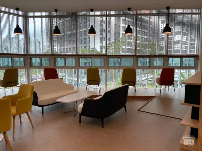 가운데 넓은 공간에는 소파와 탁자가 마련되어 있어, 가족, 연인, 모임 등 모여서 이야기를 나눌 수 있습니다.